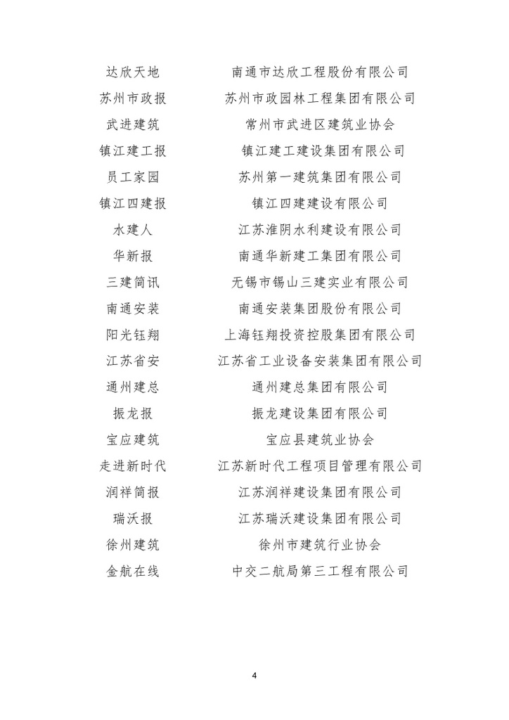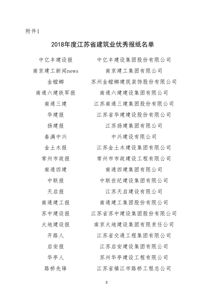 2018年8月,江蘇省建筑業(yè)協(xié)會(huì)發(fā)布《關(guān)于公布2018年度江蘇省建筑業(yè)信息傳媒工作競賽評審結(jié)果名單的通知》,由公司主辦的《江蘇省安》報(bào)被評為江蘇省建筑業(yè)優(yōu)秀報(bào)紙,而公司網(wǎng)站繼被中國安裝協(xié)會(huì)評選為優(yōu)秀網(wǎng)站后再度被江蘇省建筑業(yè)協(xié)會(huì)評為優(yōu)秀網(wǎng)站!