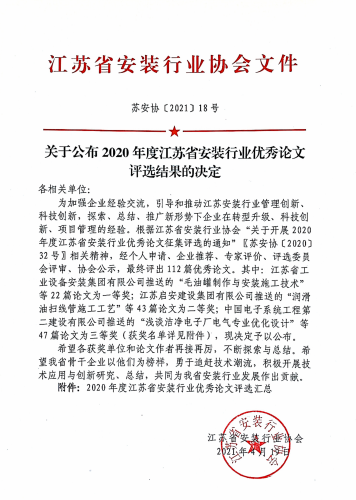 2020年度江蘇省安裝行業(yè)優(yōu)秀論文征集評選活動落下帷幕,經(jīng)個人申請、企業(yè)推薦、專家評價(jià)、評選委員會評審,最終評出獲獎?wù)撐?12篇。