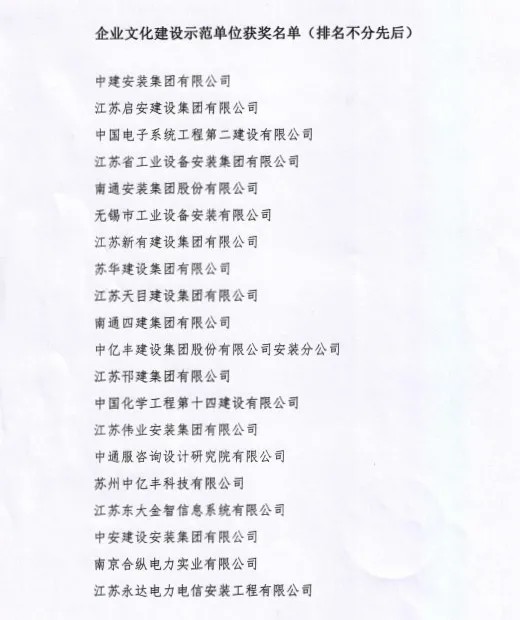 為慶祝建黨100周年華誕,江蘇省安裝行業(yè)協(xié)會表彰了一批在黨的基層組織建設(shè)和企業(yè)文化建設(shè)等方面取得成績的單位,江蘇省安榮獲企業(yè)文化建設(shè)示范單位稱號。