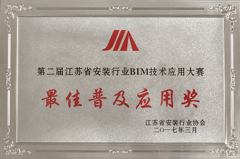 江蘇省安裝行業(yè)BIM技術(shù)大賽最佳普及應(yīng)用獎
