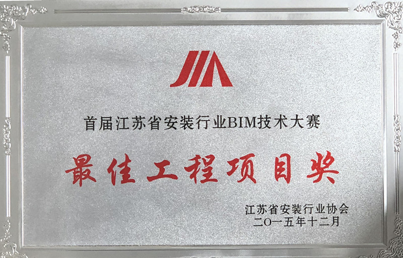 江蘇省安裝行業(yè)BIM技術(shù)大賽最佳工程項目獎